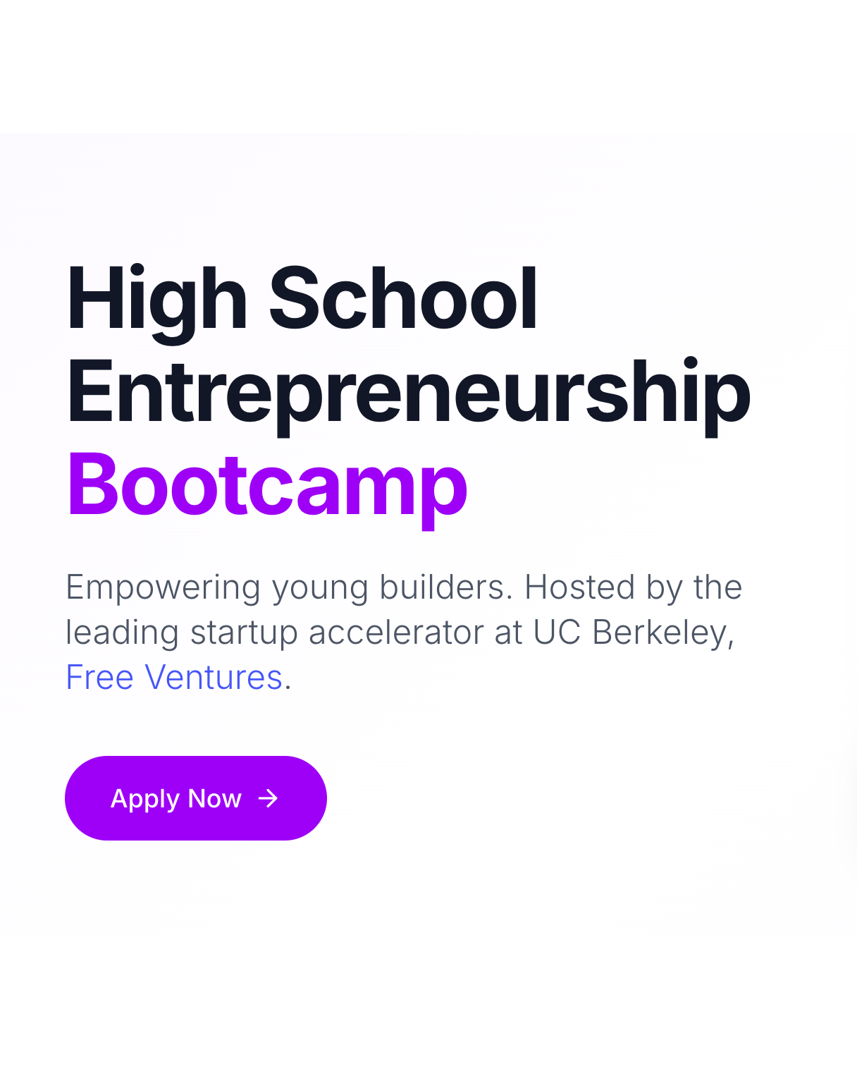 Want to build a startup but don’t know where to start? Join Free Ventures, the leading (student-run) startup accelerator at UC Berkeley, for an intensive 8-week bootcamp designed specifically for high schoolers.
